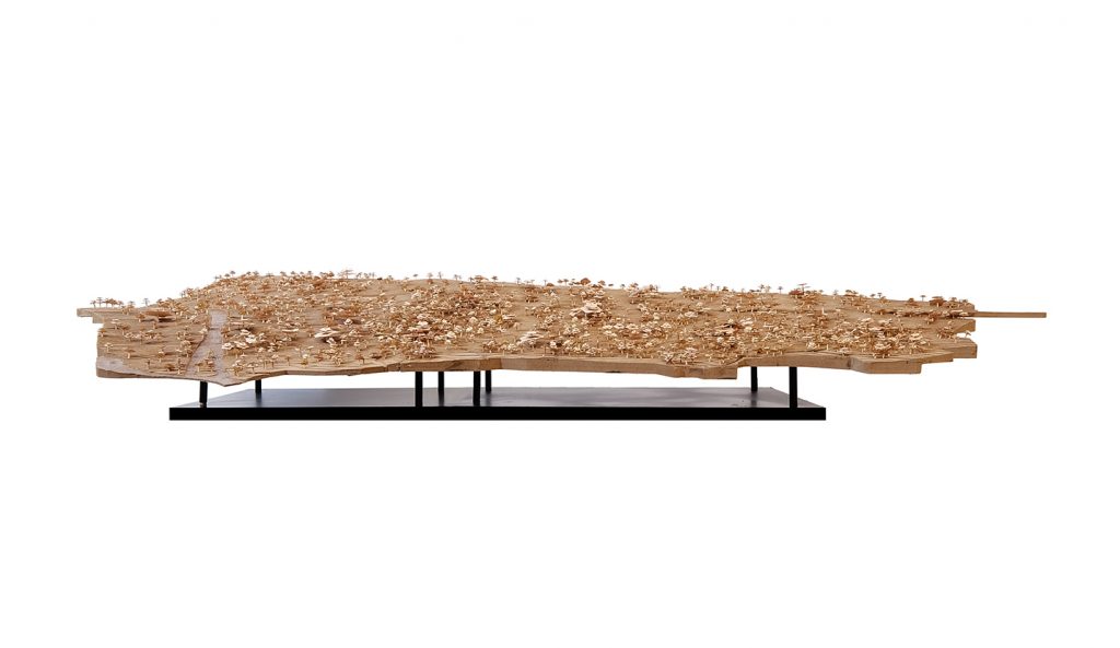 From the gate of the domain, visitors enter through a wild, overrun woodland. Passing mysterious pavilions, they are lead to the height of the hill where an endless pano-rama reaches out over the island. This journey through the wood’s enclosure and obscurity contrasted with the open panorama of the main building remains picturesque yet discrete as the hotel merges organically within the landscape.