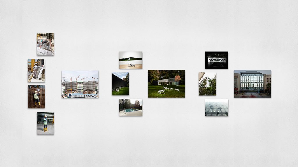 Golay investigates the theatre of assembly, going behind the curtain to explore the drama of construction before the grand reveal. The site is like a large stage, where Golay’s photographic oeuvre brings to life interactions between workers, materials and the site. His camera’s lens has suspended the concrete structures and people in time, capturing the scene forever.