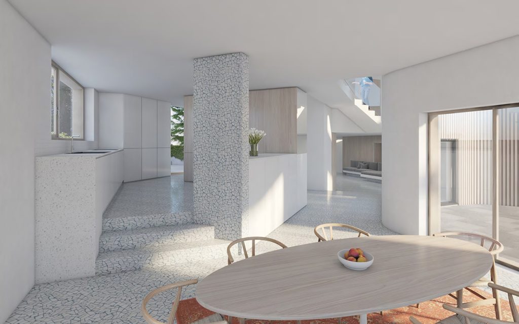 Updating the design elements that influence the sustainable qualities of the villa, in addition to traditional measures such as a review of the full envelope of the building and the installa-tion of a geothermal heat pump, G8A proposes a full photovoltaic roofing system, taking advantage of the sun’s rays to offset energy consumption.