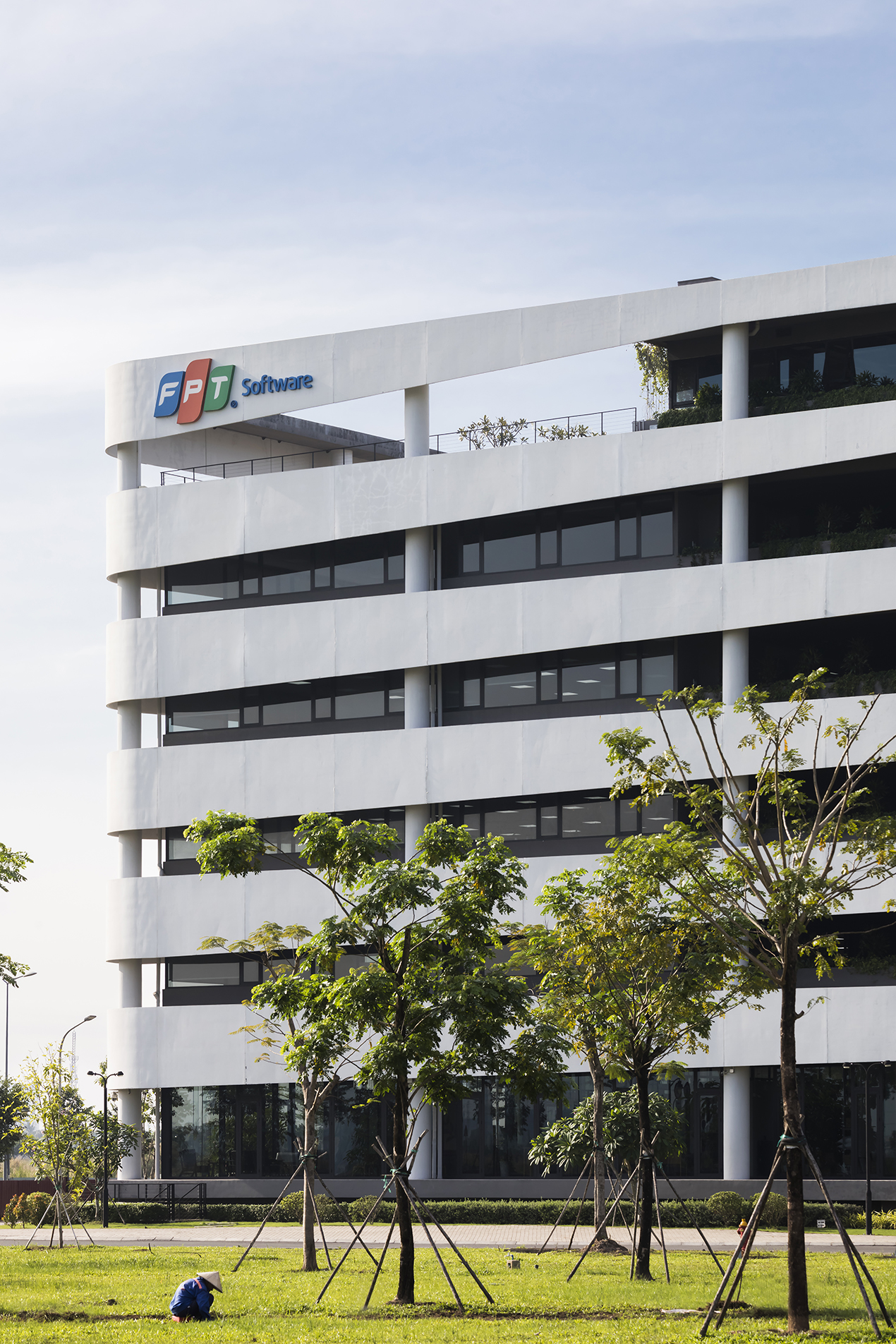 Set within a tropical climate, the pre-cast façade manipulates the orientation of sun shading to craft the beautiful illusion that is Concreate Waves. Part of new industrial zone it is the latest project for FPT in Ho Chi Minh City that will be completed in three phases. Developed from the learnings of earlier projects exploring the “yard typology” from a new perspective.