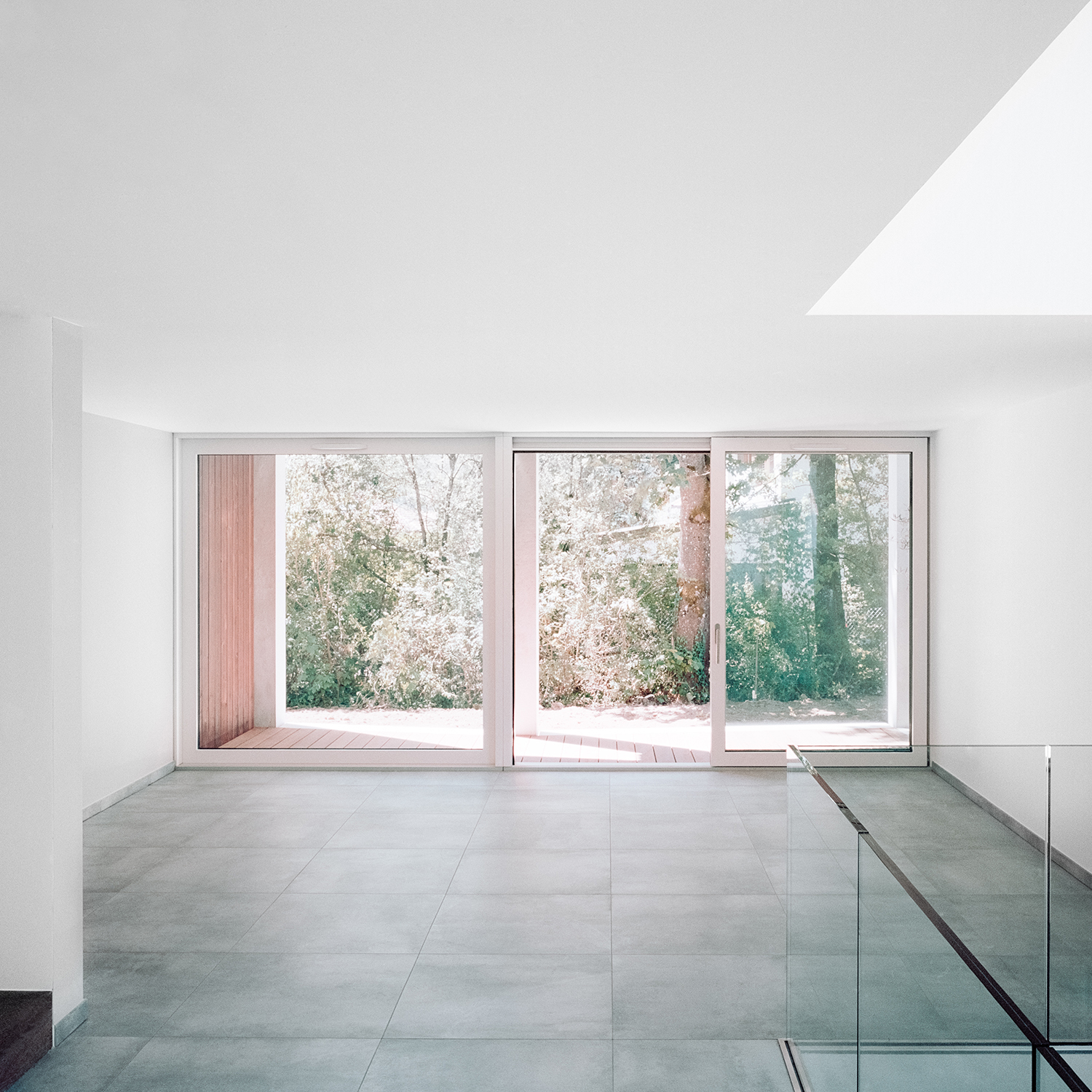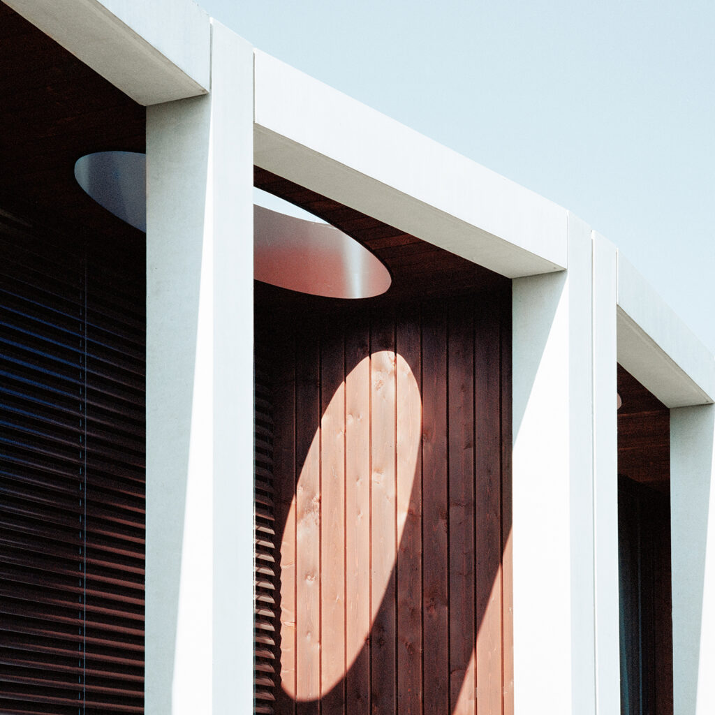 The vertical enclosure that traverses all levels, from second floor to livable basement area, allows each of the eight individual villas to profit from an abundance of natural light no matter their placement on the site. The typology then, can be reproduced in high qualities without ever losing its architectural quality.