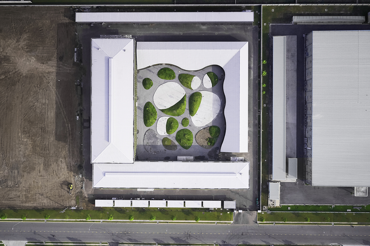 The 30’000m2 site area is placed in the centre of an industrial park 50 kilometres north of Ho Chi Minh City, the economic capitol of Vietnam. Ever since Vietnam’s economic reform in 1986 the country has seen a grappling rise in national GDP, with industries and populations moving from a primarily agricultural industry to a focused industrial practice. The past ten years has seen the doubling of industrial parks constructed on city outskirts from the North to the South of the country. With lightning speed, little regulations and priorities focused on economic gain rather than environmental impact, many of these zones have witnessed highly polluting and detrimental construction practices, transforming the previously porous land to large zones of impermeable slab development.