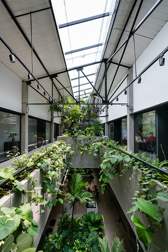 In the core of Ho Chi Minh City and enclosed in the center of a large factory complex, “Jungle Station” sets the benchmark for conceptual design of such spaces. The entirely refurbished printing factory responds not only to the logistical complications of shared program condensation but reflects on the intangible experience of shared space.