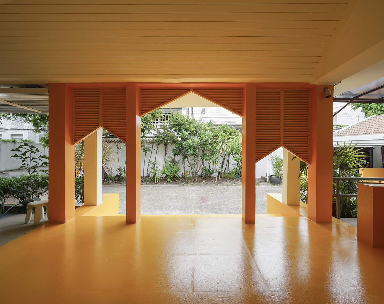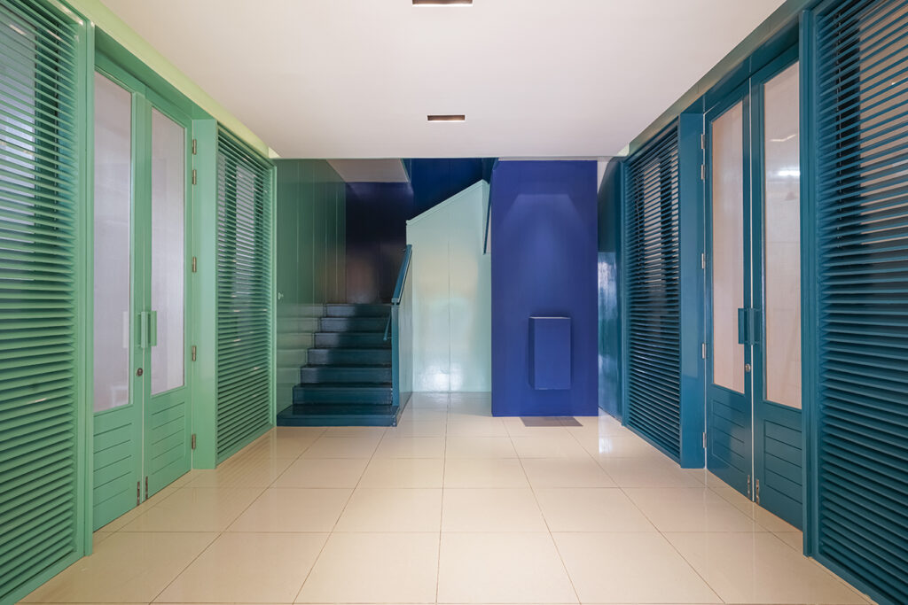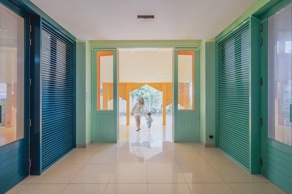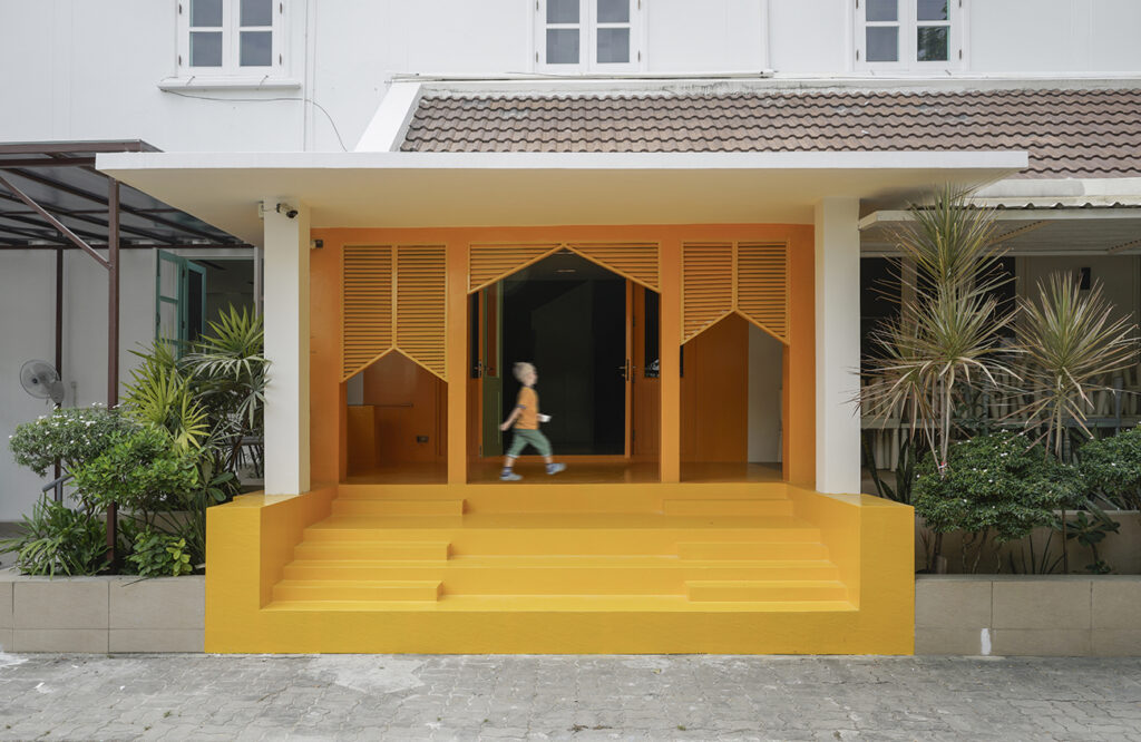 The renovation of a school in Bangkok posed a unique challenge of re-branding the space and create an environment that fosters learning, creativity, and collaboration between children and the education team. The entrance has to be a very iconic element, threshold of the school with a “big door” and a “small door.” This enabled to