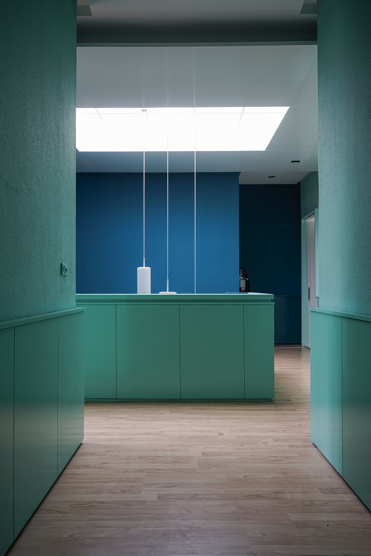 The common areas of the school were designed to be spontaneous and energetic. We used a vibrant palette of green and blue, to evoke the bustle of the kids movement. While the classrooms were designed to be calm and focused, with a neutral color palette, wooden surfaces, and furniture. The contrast between these spaces helped to express the different stages of school life and encourage students to transition with ease.