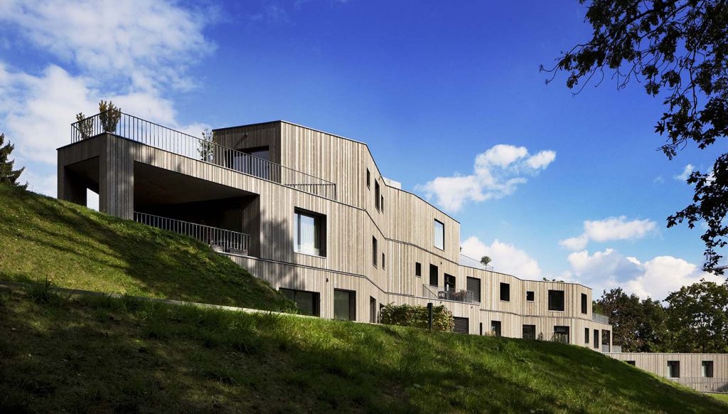 The exterior building envelope is thermally efficient; it has reinforced insulation and enables a minimization of heat loss through the envelope. The composition of the facades (concrete-insulation-ventilated wood siding) is ideal, high thermal inertia due to the concrete ensures a stable climate in the apartments (warm in winter and cold during the summer).