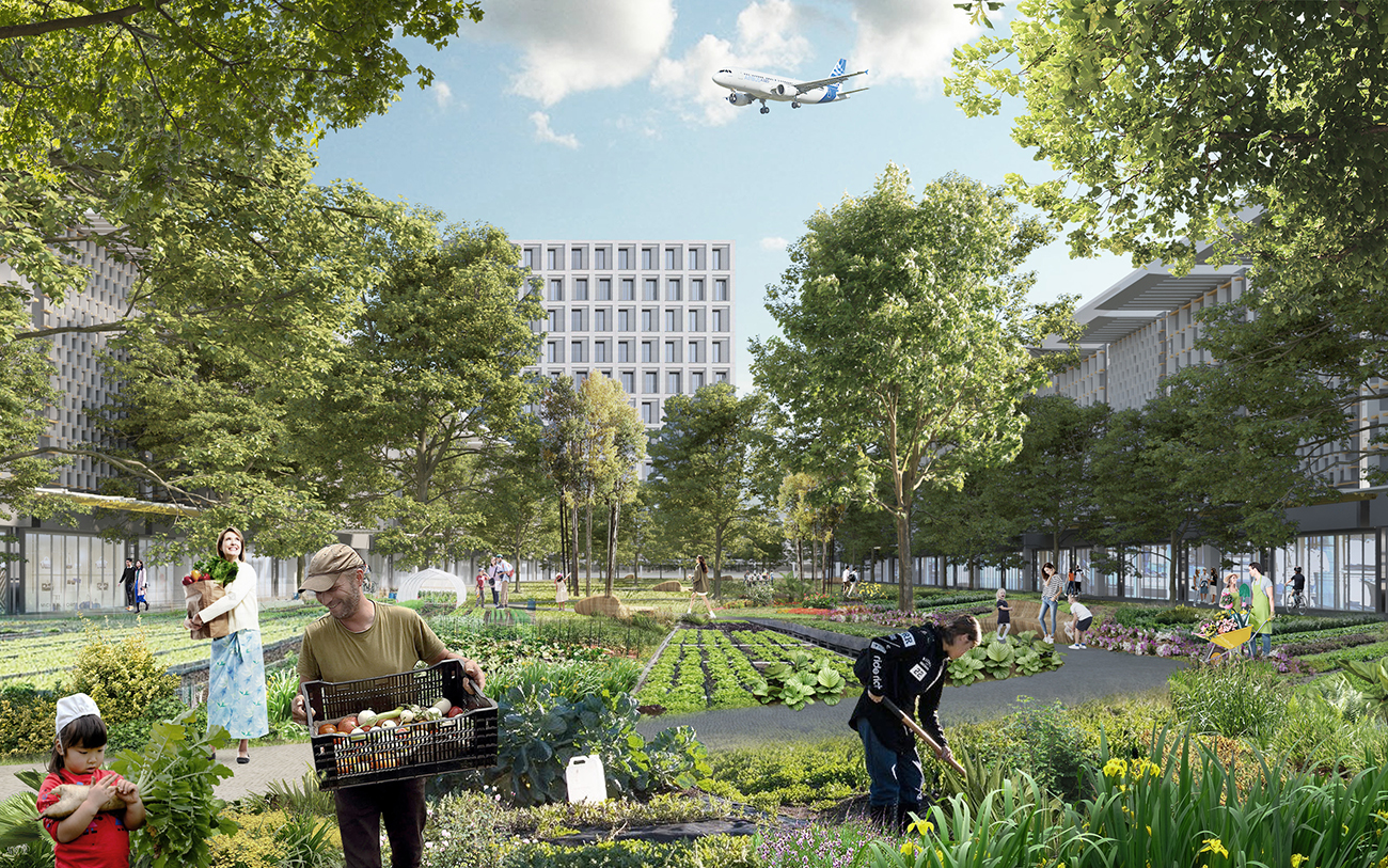 The project distinguishes itself through its integration of ecological systems within the urban framework. The concept of ecological corridors forms the foundation of the spatial strategy, ensuring that urban development respects and enhances the natural landscape. The green buffer zone surrounding the airport provides a transition between airside operations and urban areas, mitigating environmental impact while creating opportunities for recreational spaces and habitat restoration. A network of active ecological corridors connects green spaces, water bodies and urban districts, ensuring that natural systems remain intact and integrated. Urban green infrastructure, including parks, green roofs and permeable surfaces, all support environmental performance by improving air quality; reducing energy consumption and enhancing the urban experience.