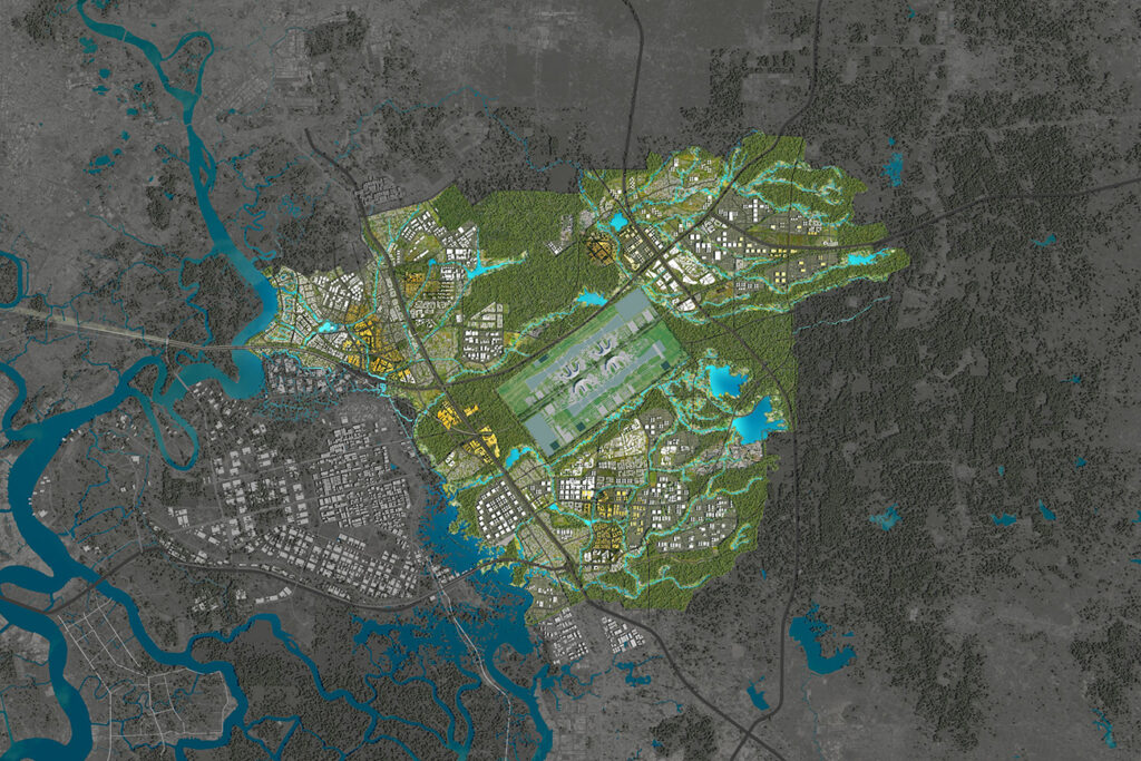 Long Thanh International Airport Aerotropolis is set to become a modern, efficient and culturally significant gateway to Vietnam. Around it, compact mixed-use districts integrate with airport-related industries, business hubs and residential communities; forming the aerotropolis over time. These vibrant areas will bring together workplaces, cultural venues and public spaces, creating an ‘airport city’ that serves both existing and new residents and working populations. Ecological corridors form the foundation of the spatial strategy, ensuring that urban development respects and enhances the natural landscape and the integration of natural systems. The aerotropolis embodies a forward-thinking model for new airport cities—where economic growth and environmental responsibility create this new future.