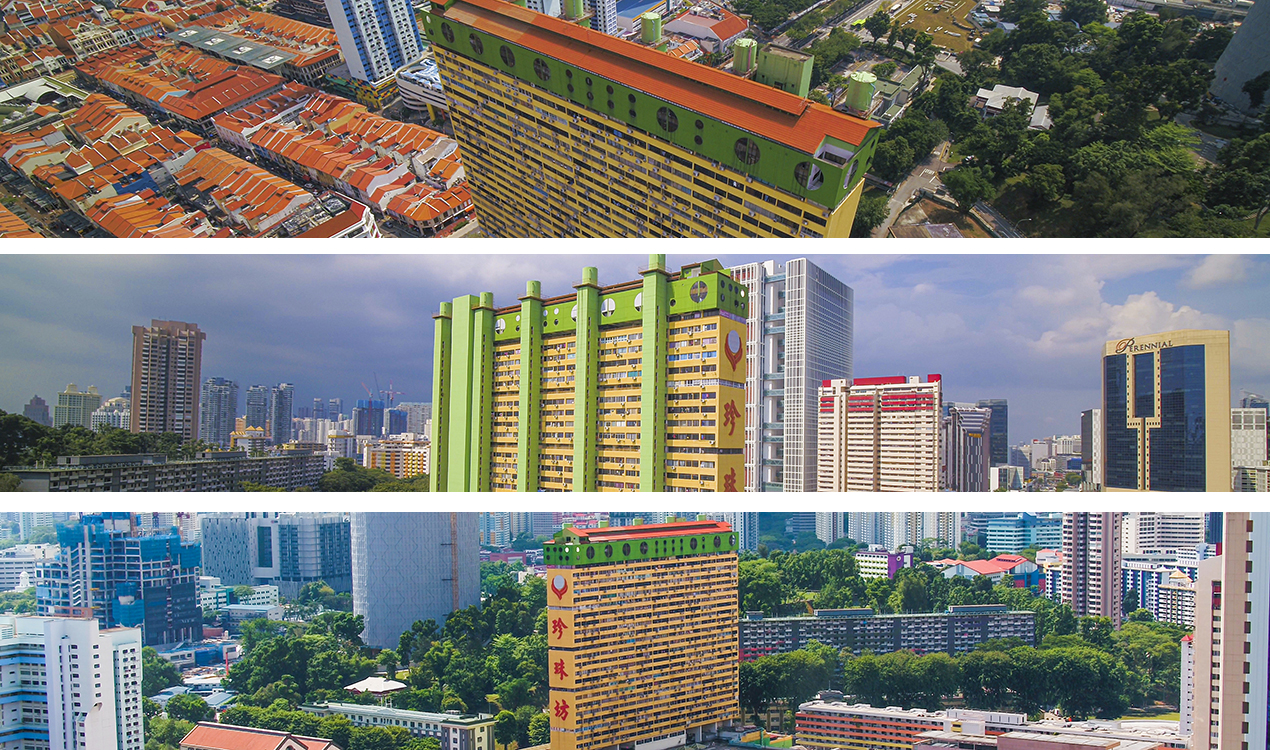 The Panoramic Utopian Singapore photography series displays aerial views of selected Singaporean built projects. Typically defined as “an unbroken view of a whole region surrounding an observer” these panoramic views isolate specific architectural accomplishments, built from the 1970s until today. Each visionary project demonstrates the utopian dimension of architecture in Singapore, and have had significant impact on the discourse on architecture and urban design in Southeast Asia and beyond.