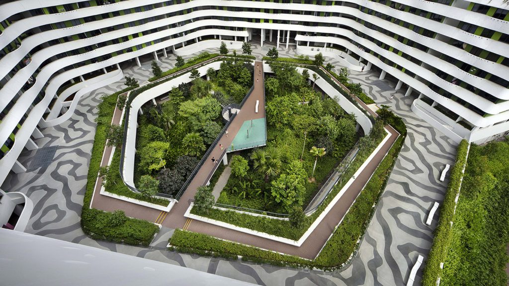 Looking to the future whilst looking back to the past, the Punggol Waterway Terraces form a blueprint for 21st century sustainable mass housing and mark a return to Singapore’s original ethos of community pride and identity. The original SIT public housing blocks were tropical adaptations of contemporary clean-lined modernism. As they were designed well before
