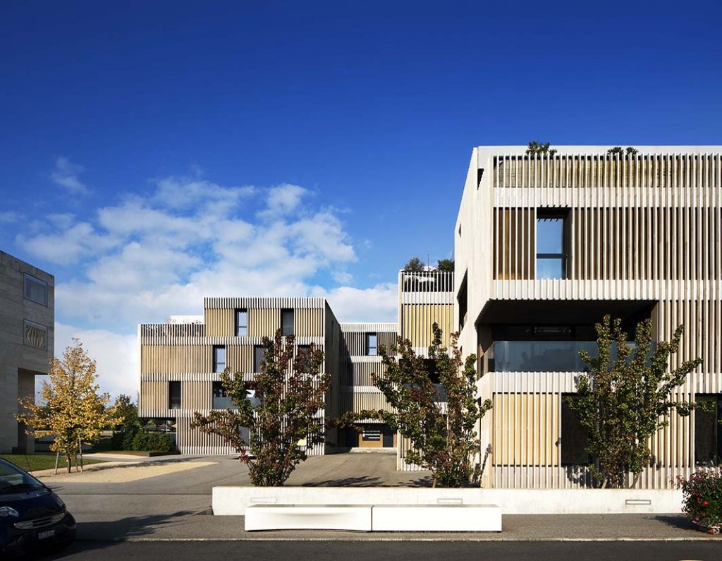 Spring 2010 saw the first stage of the PLQ (Plan de Quartier) in the centre of Crans-près-Céligny, with the construction of five housing buildings – the whole urban plan seeks thirteen blocks in total. To ensure a fresh diversity in the area, the client engaged two different architects to work on the first five buildings.