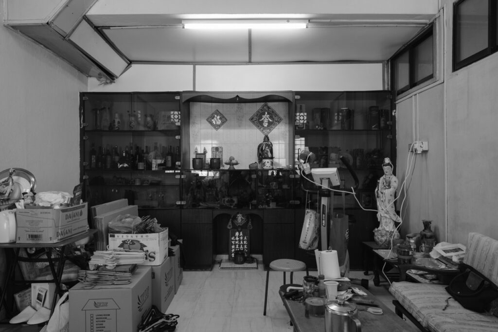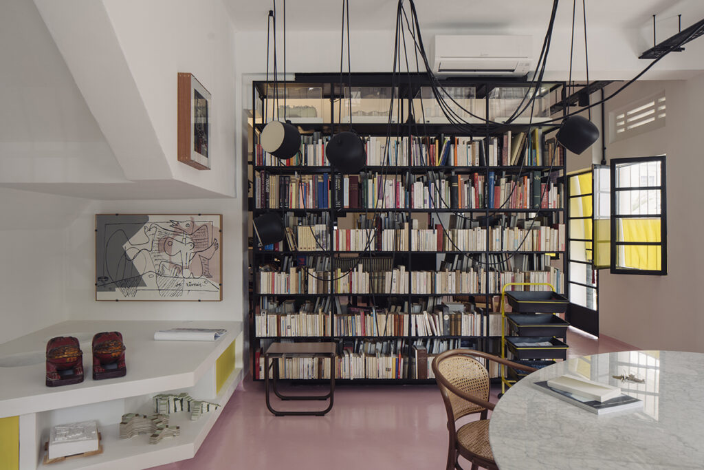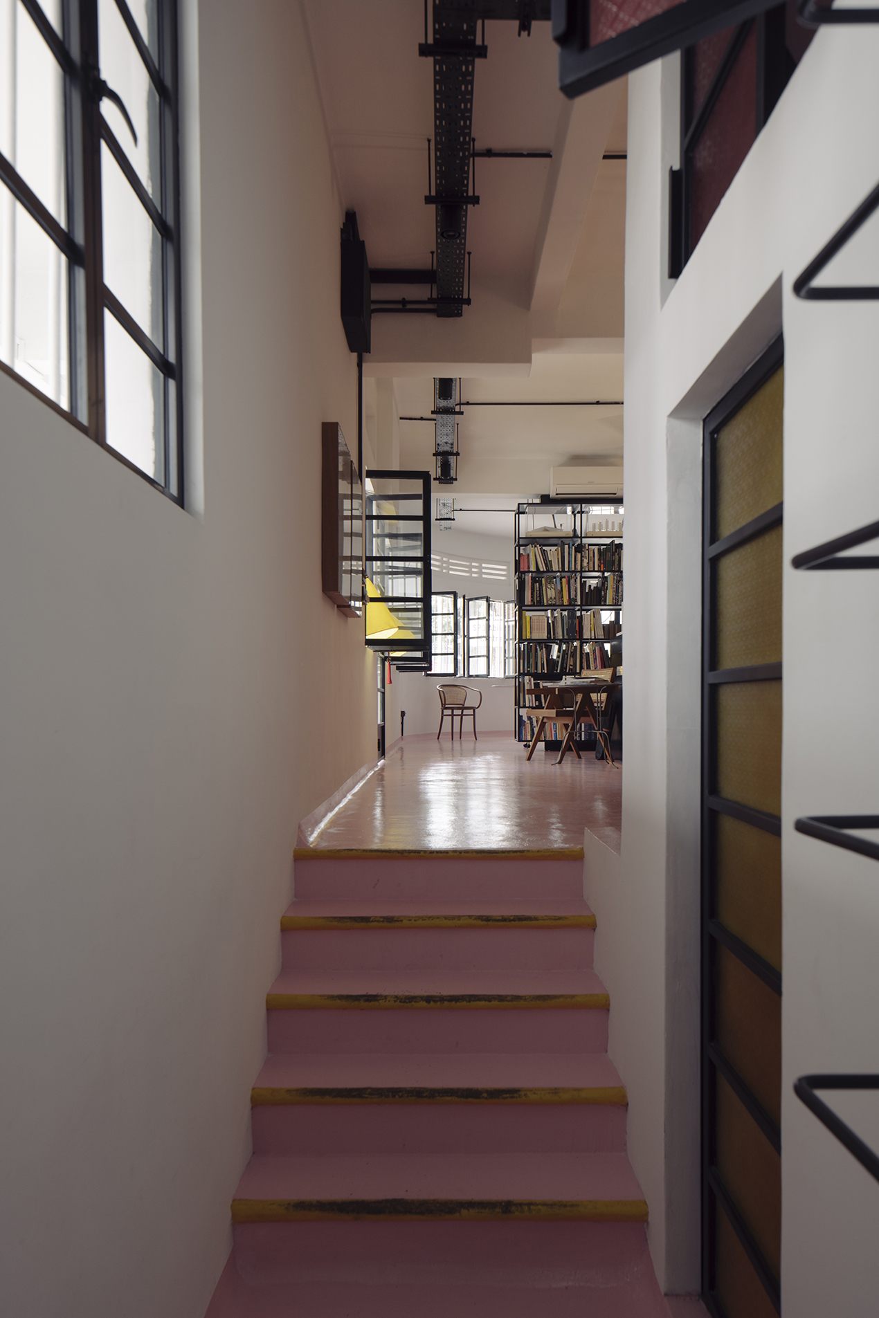 Finally, the use of yellow typography in the discreet signage winks at the HDB regulation coloring of access points, playfully highlighting the very regulated Singaporean way of living!