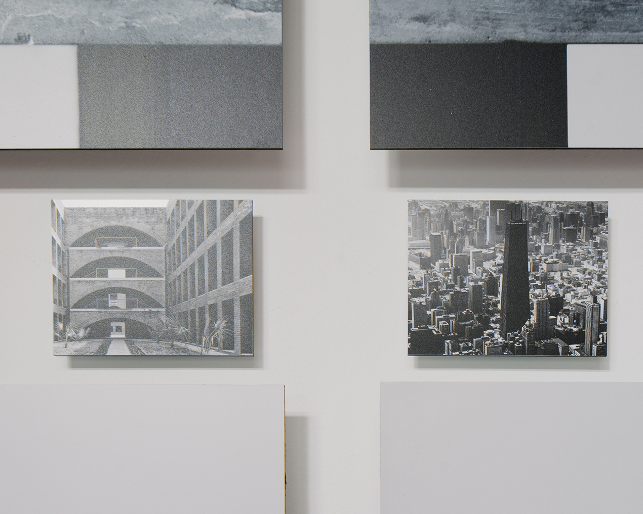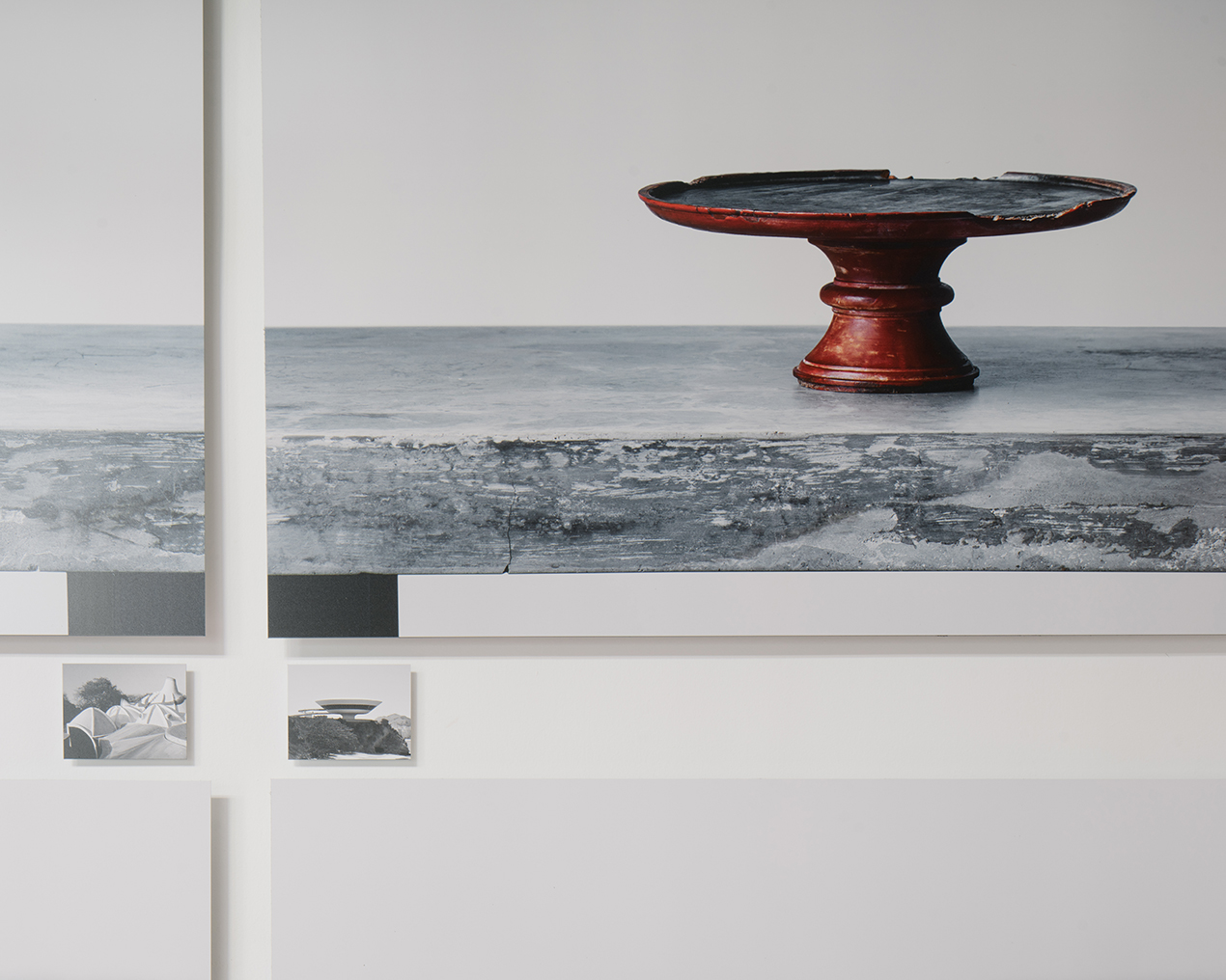 Here, our interest in these domestic objects shouldn’t been seen as a literal formal translation. Rather, it concerns the reiteration of the quality of tactile experience and their potential/perceptible transformation into forms of built work. The Architectural Moment places in relation to each object-image a reference of modern icons of architecture. Evoking a conceptual heritage in the reconciliation of profiles, angles and textures, hinting at a cyclical relation between tradition to modernity.