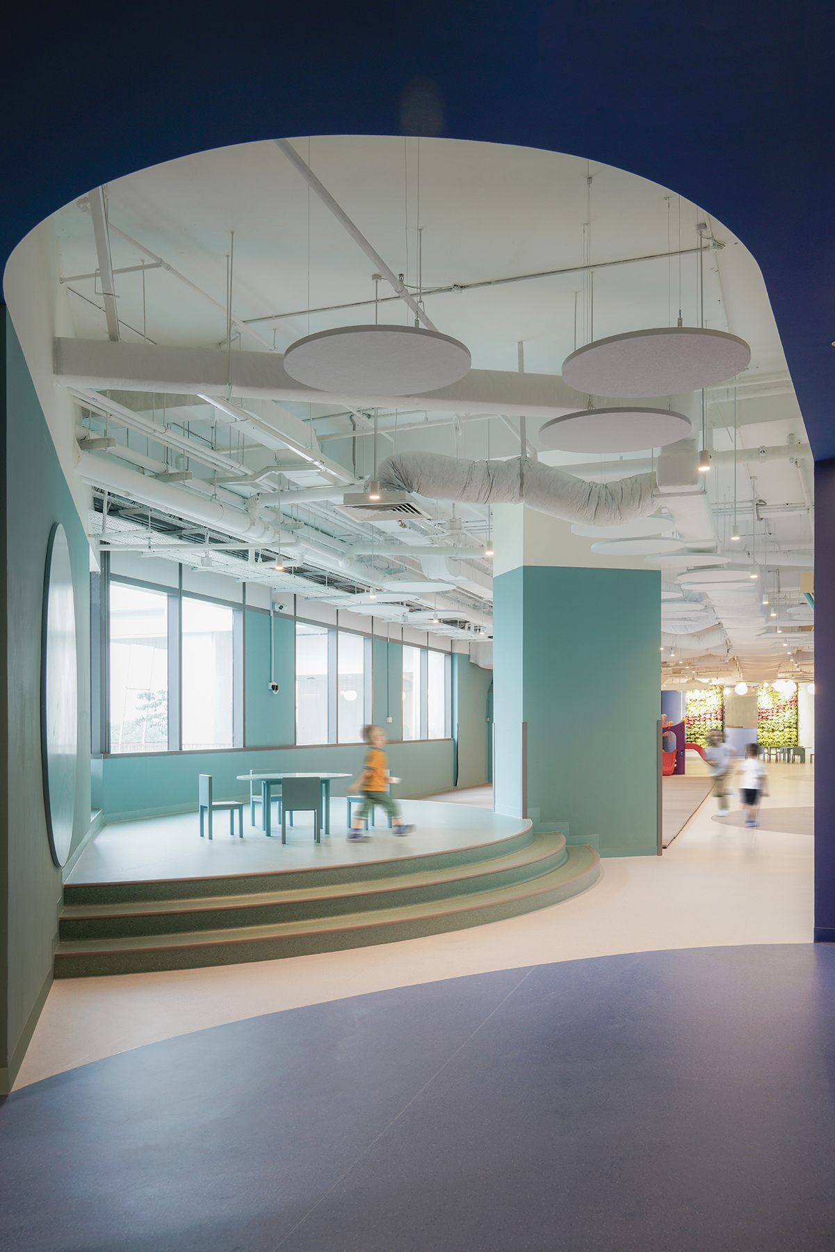 Flexibility is key in this architectural endeavor, as the space adapts to the dynamic rhythms of school life. It transforms effortlessly from a library to a theater stage, from a motor skills development area to a playground, seamlessly accommodating various activities essential to holistic child development.