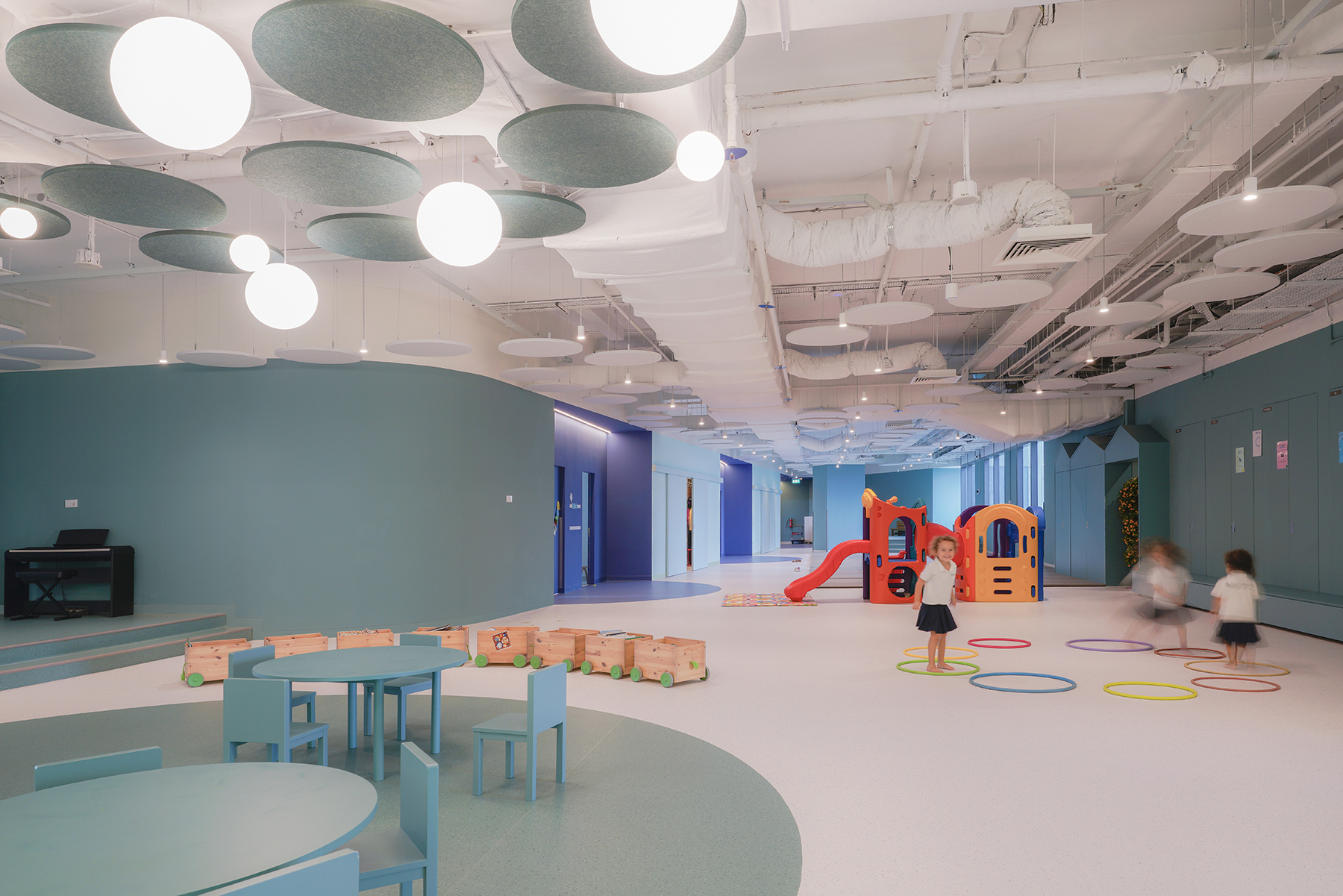 The second project undertaken by G8A for the Odyssey Group in Southeast Asia, La Petite Ecole in Singapore stands as a testament to innovative architectural design tailored for educational spaces. Catering to both kindergarten and primary education with its ten classrooms, the school embraces a vibrant chromatic palette, strategically employed to foster an environment conducive to creativity.