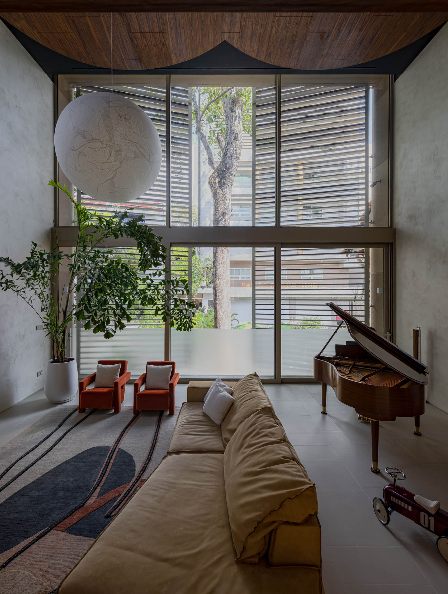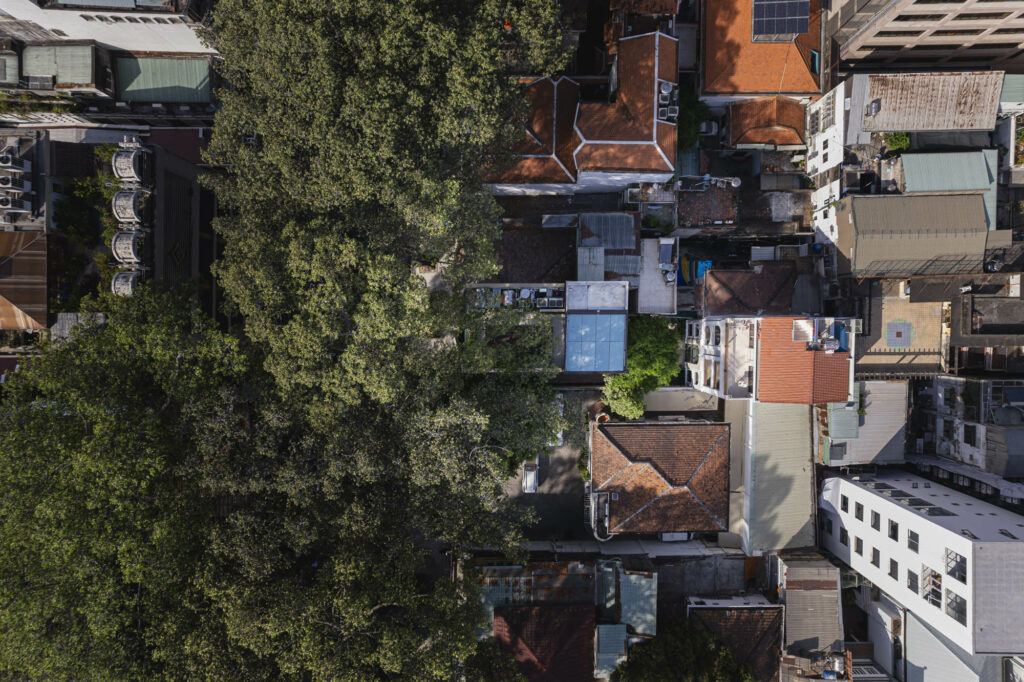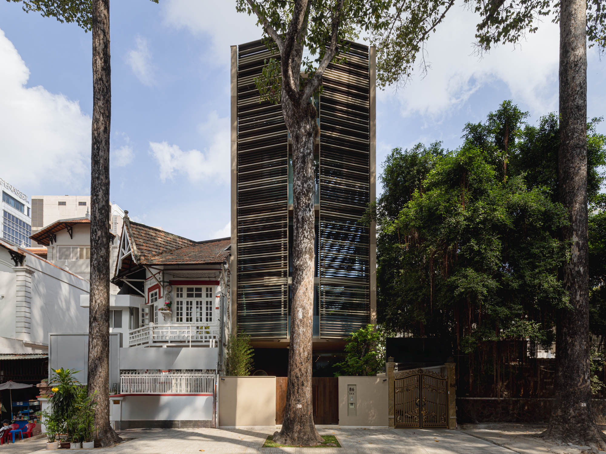 The Gate House has been designed as tribute to a magnificent “dipterocarpus alatus” tree (cây dầu rái), a cherished heritage species deeply intertwined with the memories of Saigonese. Many central streets of Ho Chi Minh City are adorned with these towering dipterocarpus trees, which are highly recognizable due to their mottled beige bark, the extremely vertical trunks and especially, their distinctive winged seeds, which spin in the air during certain seasons.
