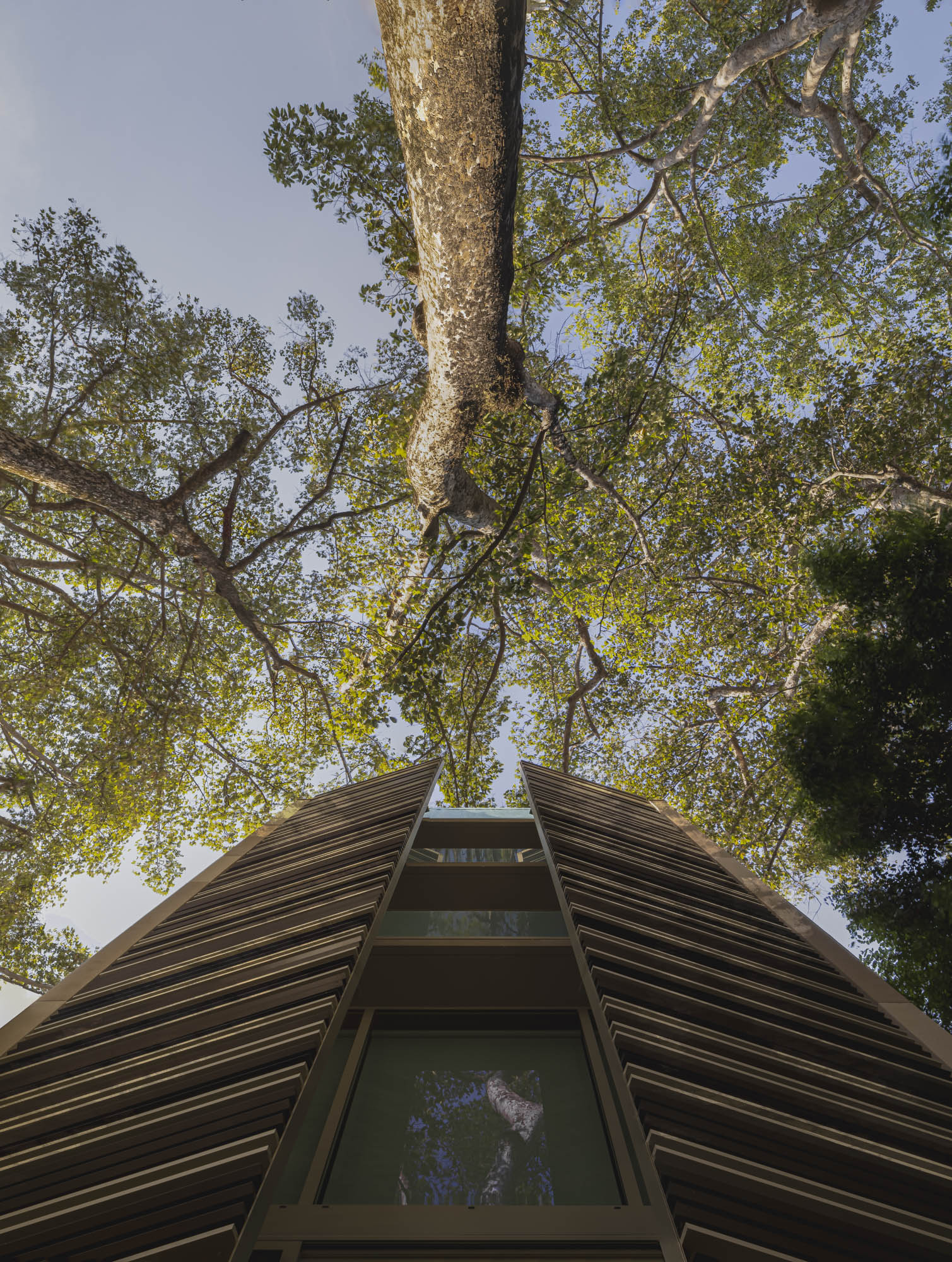 Each of the five floors has been designed to offer a distinct experience reflecting the nature of the tree at different levels, from the trunk to the leaf canopy. The promenade culminates below the canopy in a roof terrace that embraces the perspective of the tree-lined street.