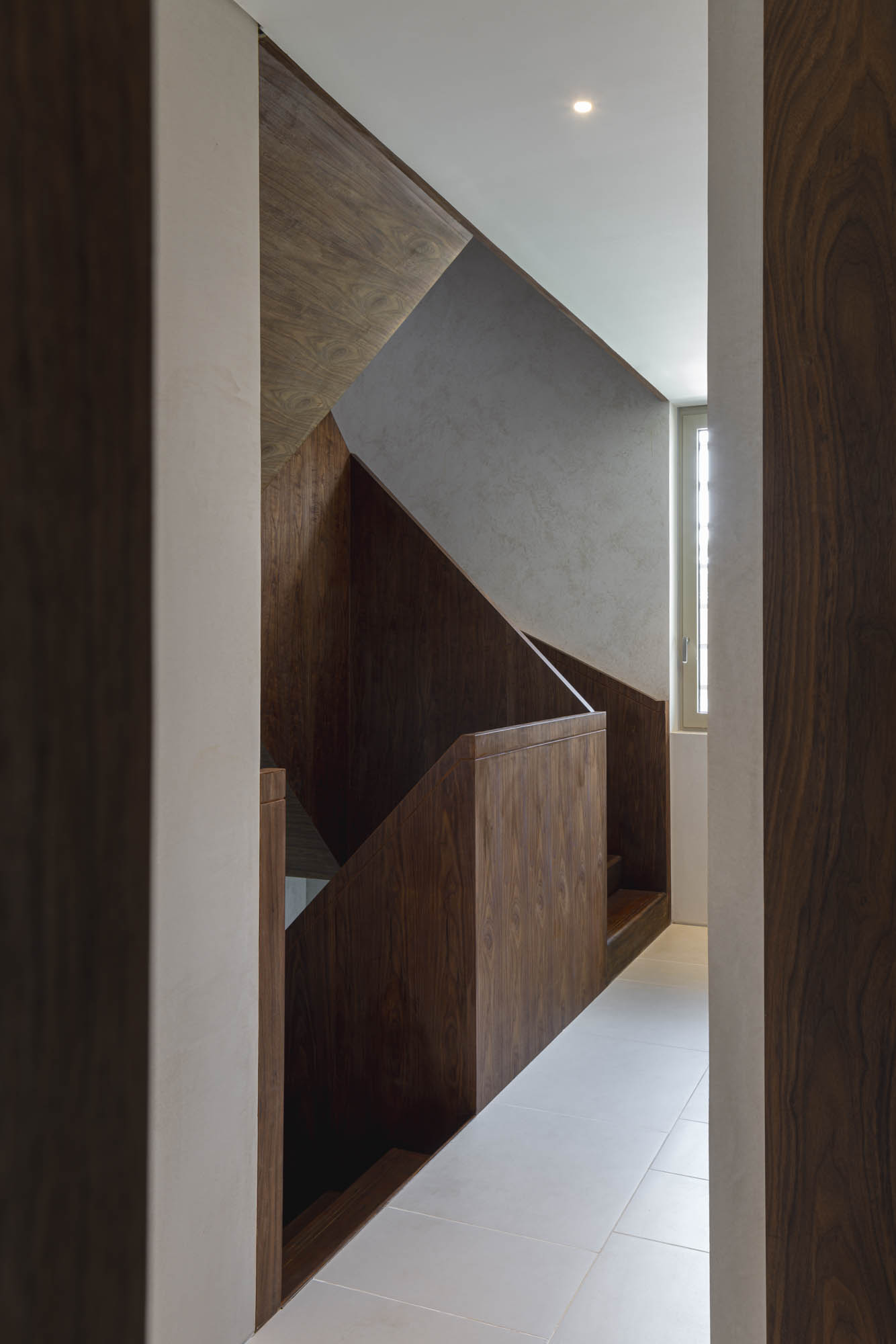 The proposed architectural gesture, opening a giant gate toward the majestic tree, pushes the house into a secondary role within the scenario. The tree, perfectly centred on the plot width, remains undoubtedly the master of the place, while the internal narrative of the house establishes an interdependent relationship with it.
