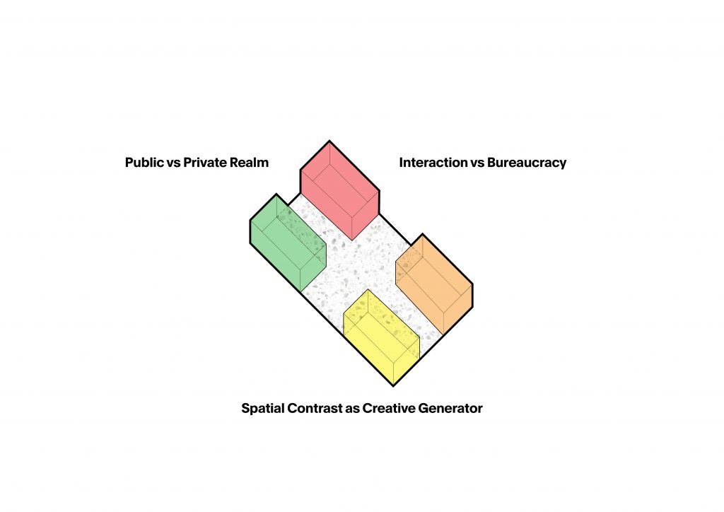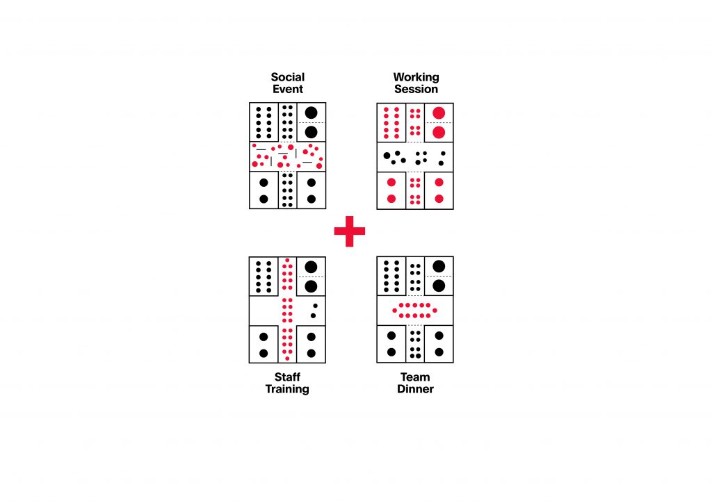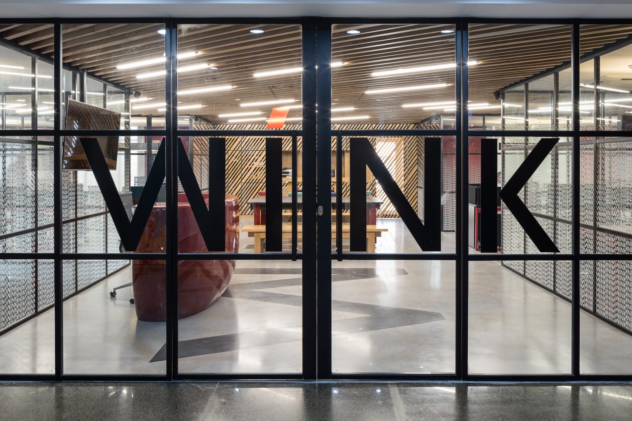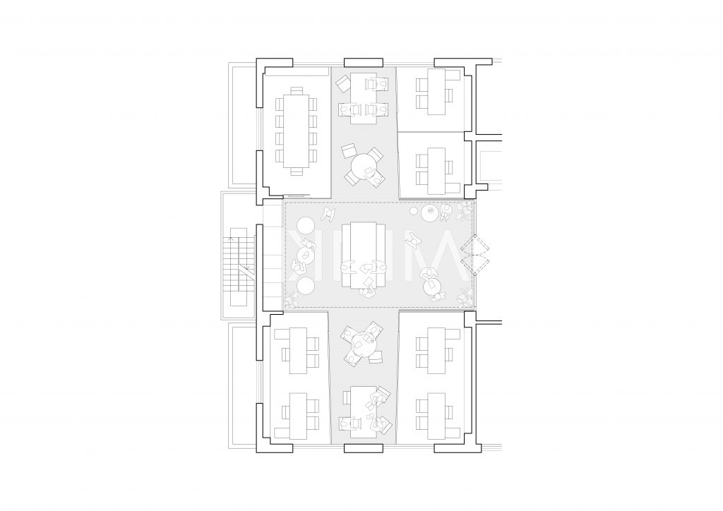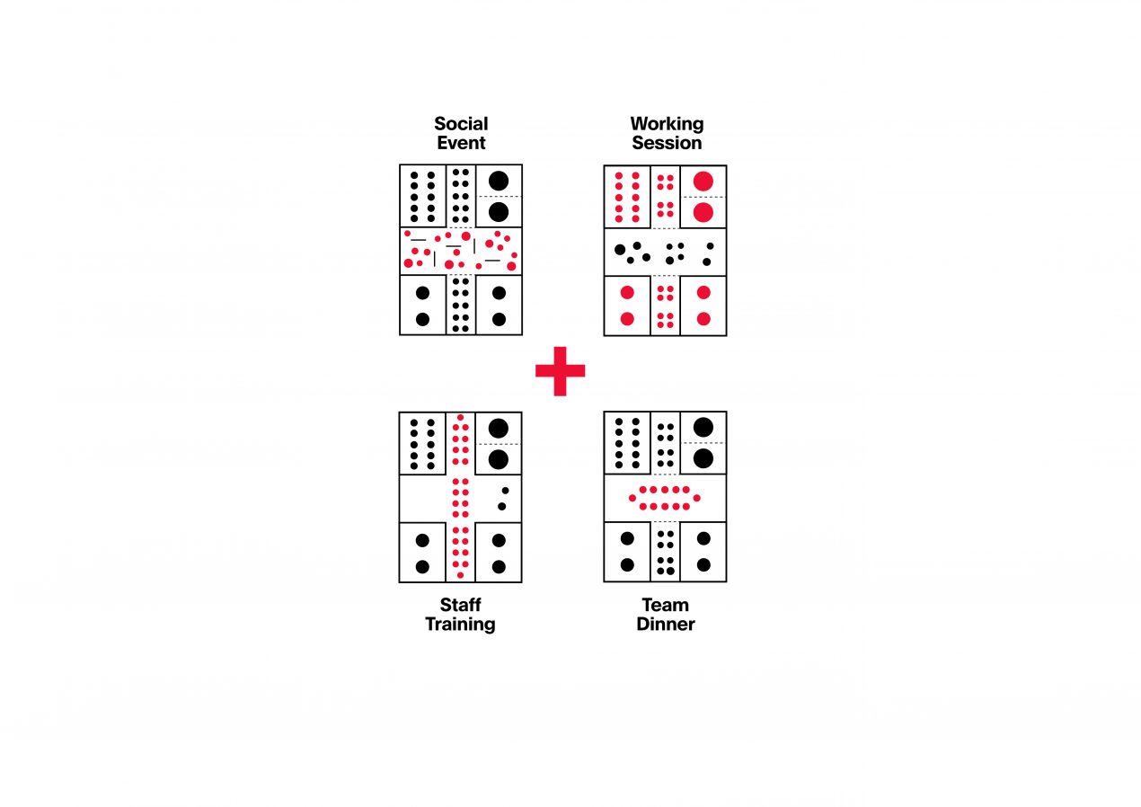 The office space was to be efficient yet creative, and highly flexible in order to accommodate a range of activities from group meetings, workshops, social events and individual work-times. With enclosed meeting spaces placed in each four corners of the site, the central open-cross space holds the majority of the office’s activities. With a warm wooden ceiling and a muted red reinterpretation of the brands’ color scheme, the inclusive design also allows for an abundance of natural light to fill the area, creating a relaxed and casual atmosphere for the workers and guests.